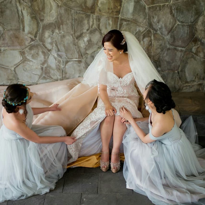 Sepatu wedding umumya dikenakan untuk gaya pengantin modern atau internasional, memberikan sentuhan elegan dan personal pada keseluruhan tampilan.